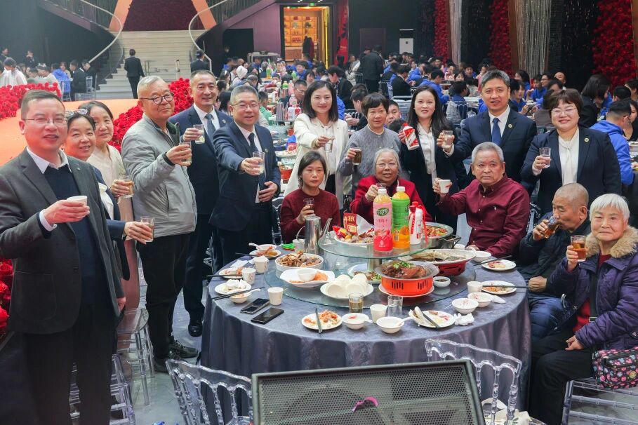 信成五位高管化身“信成财神天团”,带来精心编排的“来财舞”,为现场家人们送上马年福运,更有满载福气的红包传递到每一位家人手中。现场欢声笑语,祝福声此起彼伏。在喜庆祥和的气氛中,信成团圆晚宴正式开启。