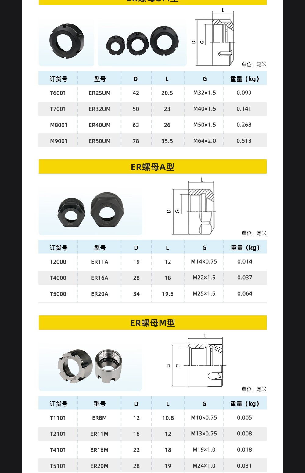 ER螺母M型 压帽拉钉、结构平衡螺母 简介:1.选用***铬钼钢42CrMo大批量生产。2.抽样检测保证产品硬度一致,耐用性高。3.大端内锥面与螺纹孔一次加工成型,保证同心度和加工精度。4.表面发黑处理,外观精美,防锈性能高。 咨询热线:400-6700-379 留言给我们 产品详细 上一篇:大隈机床拉钉 JIS B6339-40P/T 止水拉钉 下一篇:ER螺母UM型 压帽