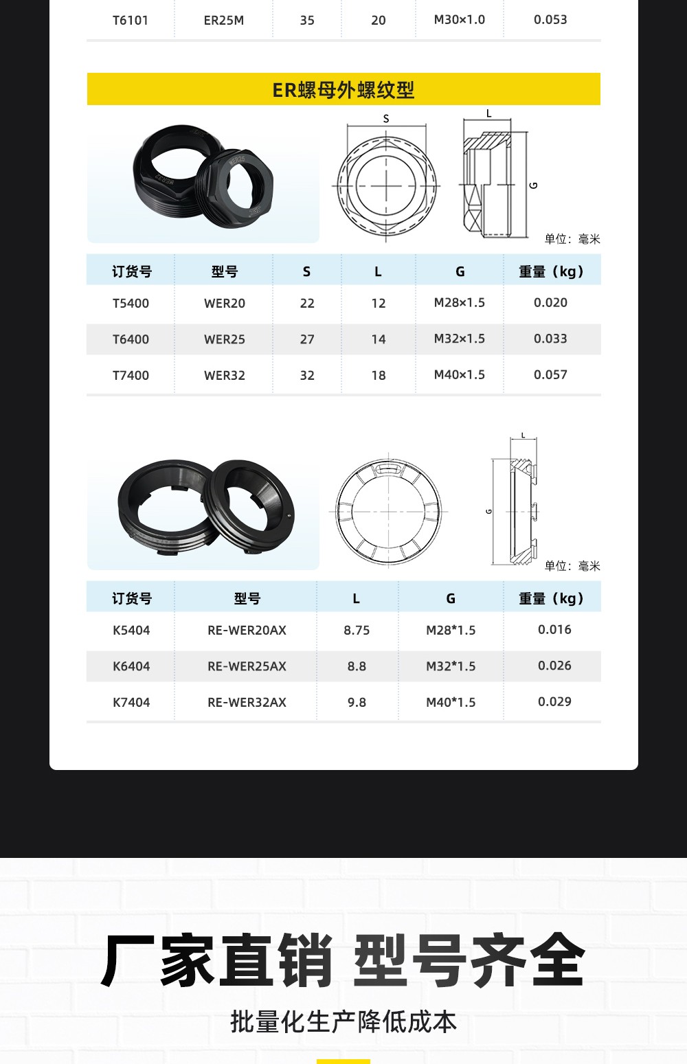 ER螺母M型 压帽拉钉、结构平衡螺母 简介:1.选用***铬钼钢42CrMo大批量生产。2.抽样检测保证产品硬度一致,耐用性高。3.大端内锥面与螺纹孔一次加工成型,保证同心度和加工精度。4.表面发黑处理,外观精美,防锈性能高。 咨询热线:400-6700-379 留言给我们 产品详细 上一篇:大隈机床拉钉 JIS B6339-40P/T 止水拉钉 下一篇:ER螺母UM型 压帽 分享到:0 用手机看 拍下二维码,信息随身看 试试用微信扫一扫,在你手机上继续观看此页面。