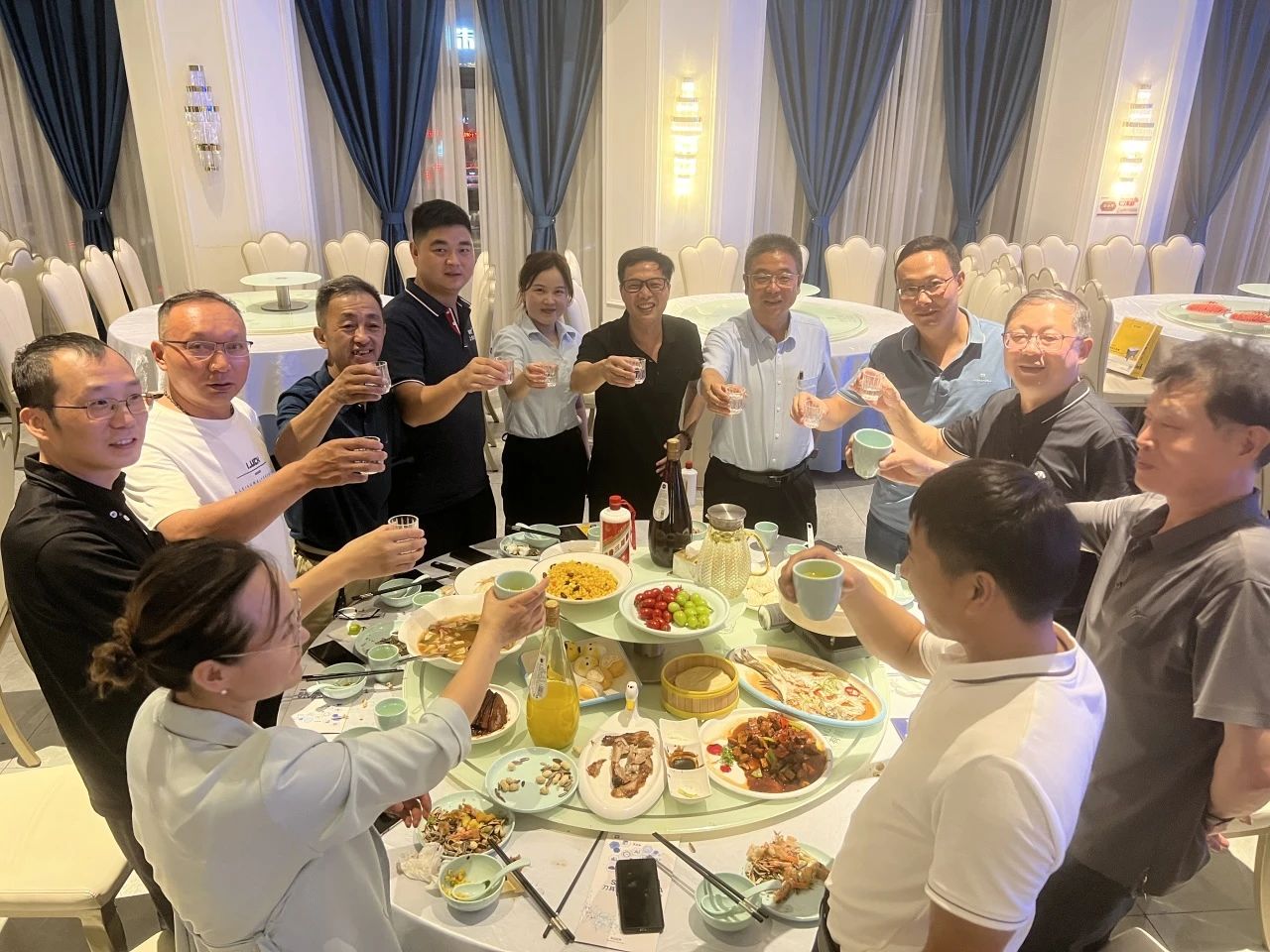 答谢晚宴上,丁董致开席词,主办单位洛阳航拓精工科技有限公司张晓峰先生、洛阳瑞格机械设备有限公司徐宁先生,赞助单位洛阳跨越速运徐怀敏女士依次上台致敬酒词,现场穿插微信红包雨,将晚宴推向一波又一波***。